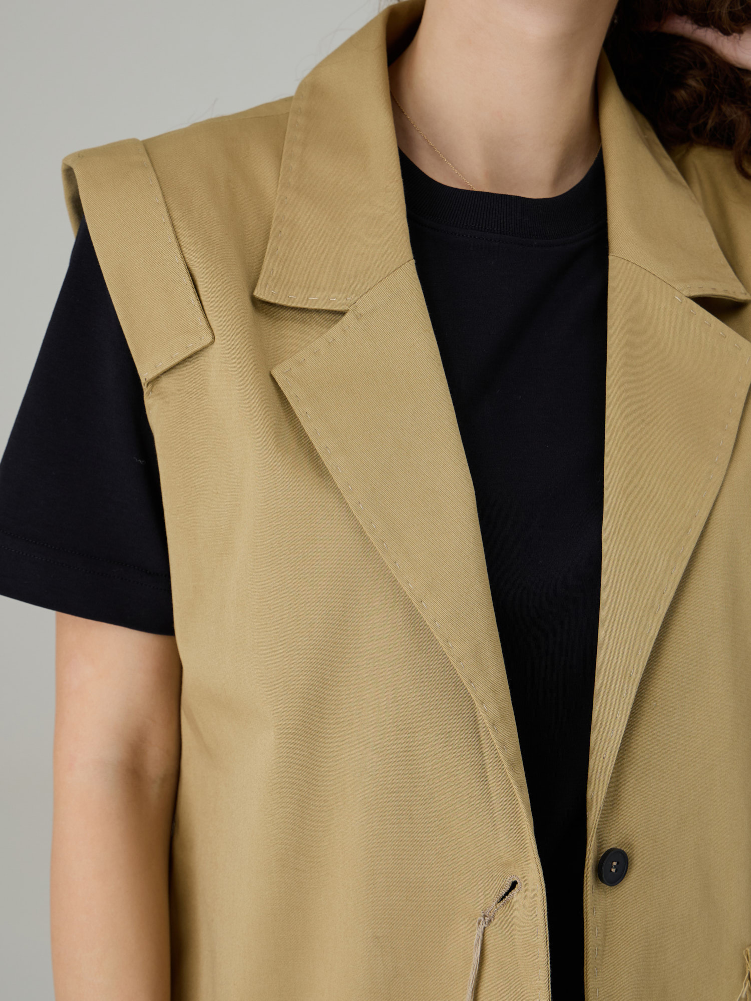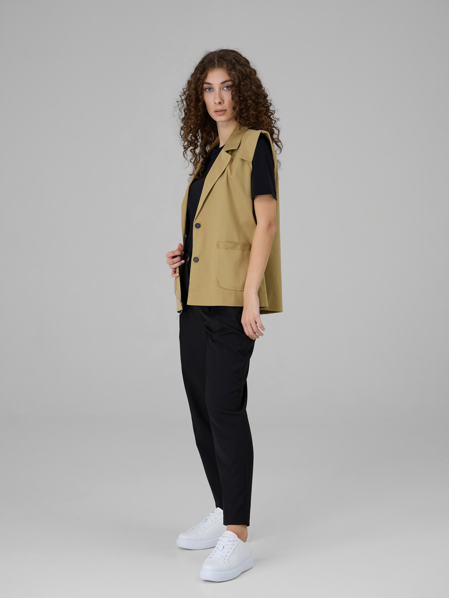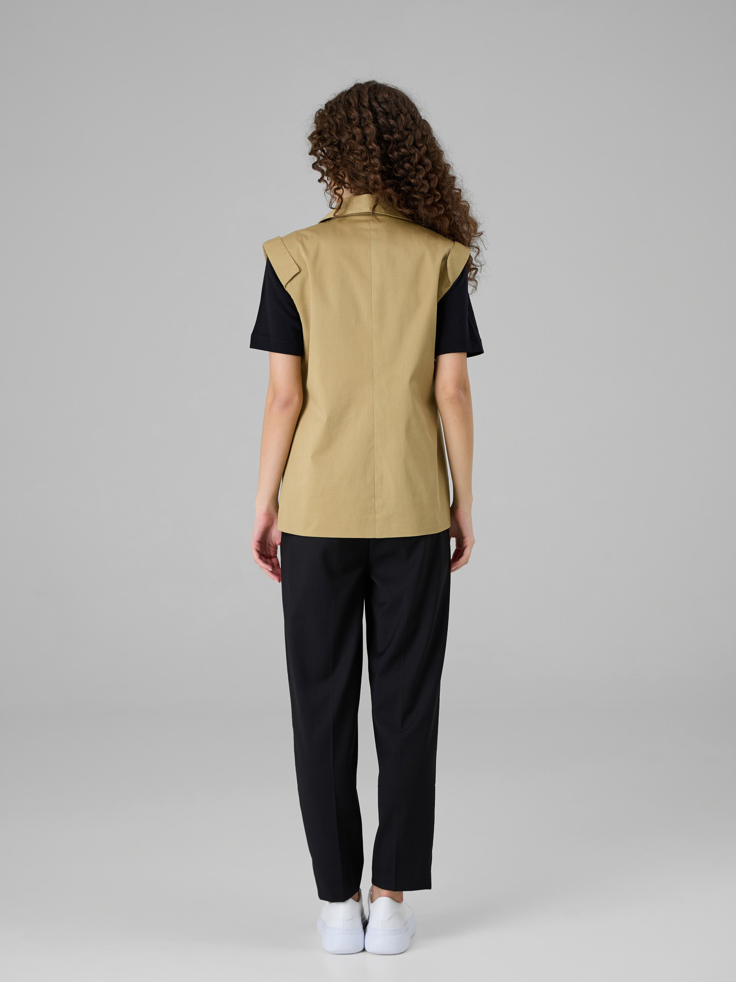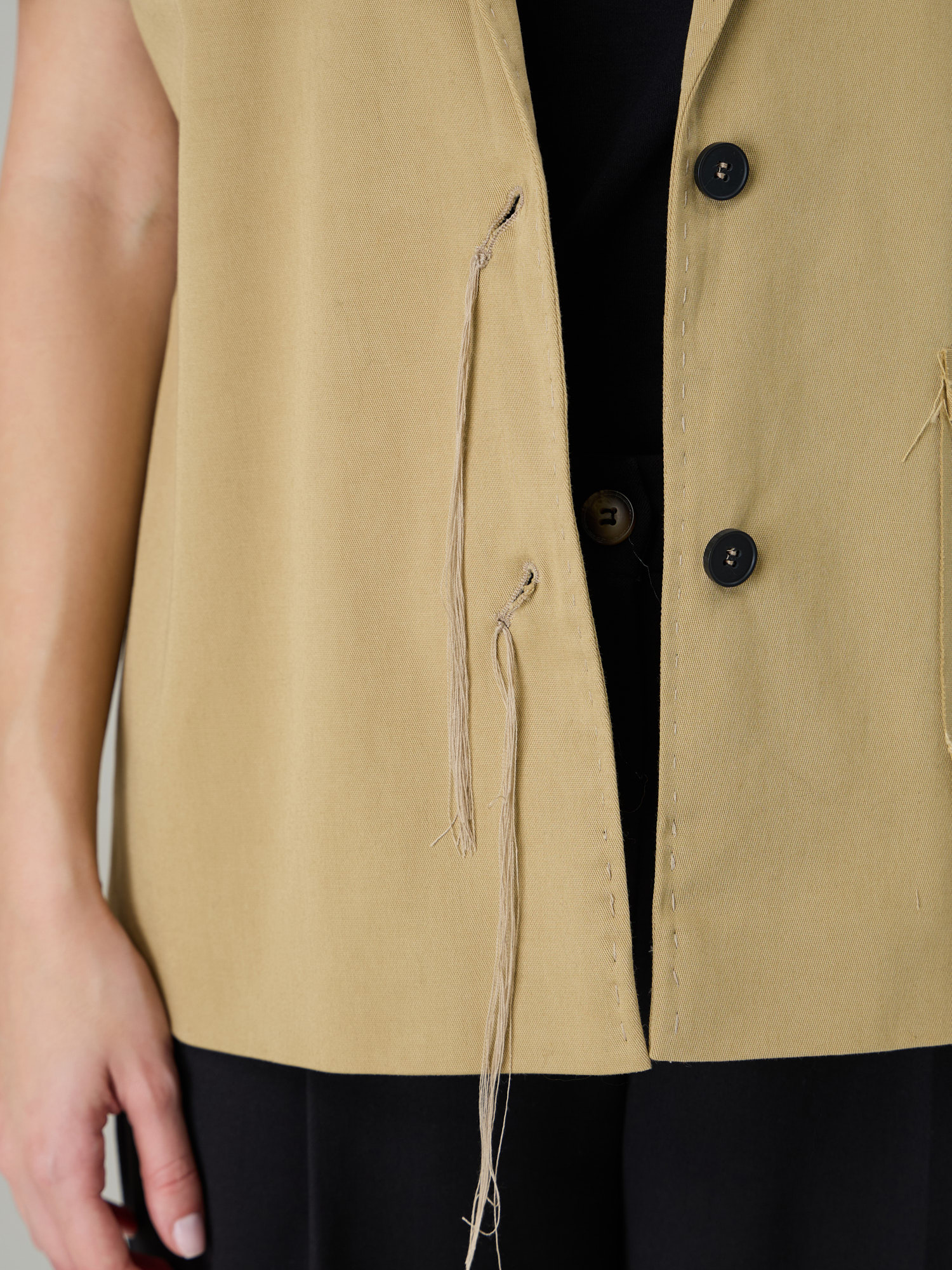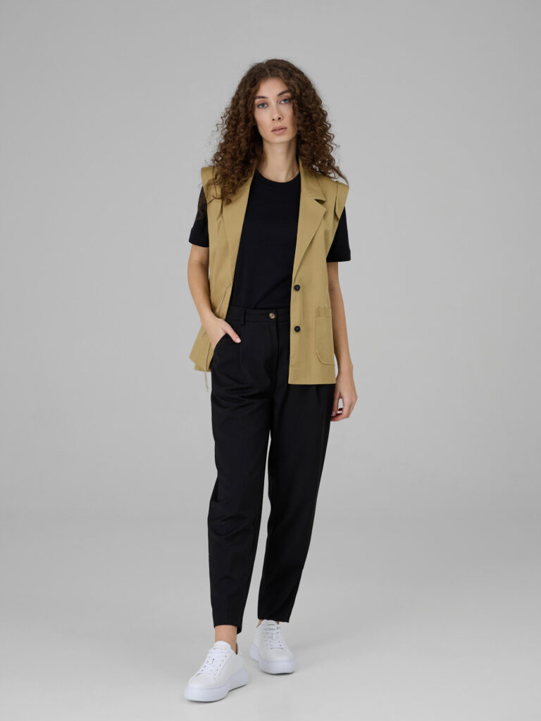 LOEN este o vesta cu umeri intorsi, definita de o croiala moderna si o estetica urbana, relaxata. Materialul usor si forma dreapta pastreaza minimalismul piesei, in timp ce detaliile neconventionale ii ofera caracter.